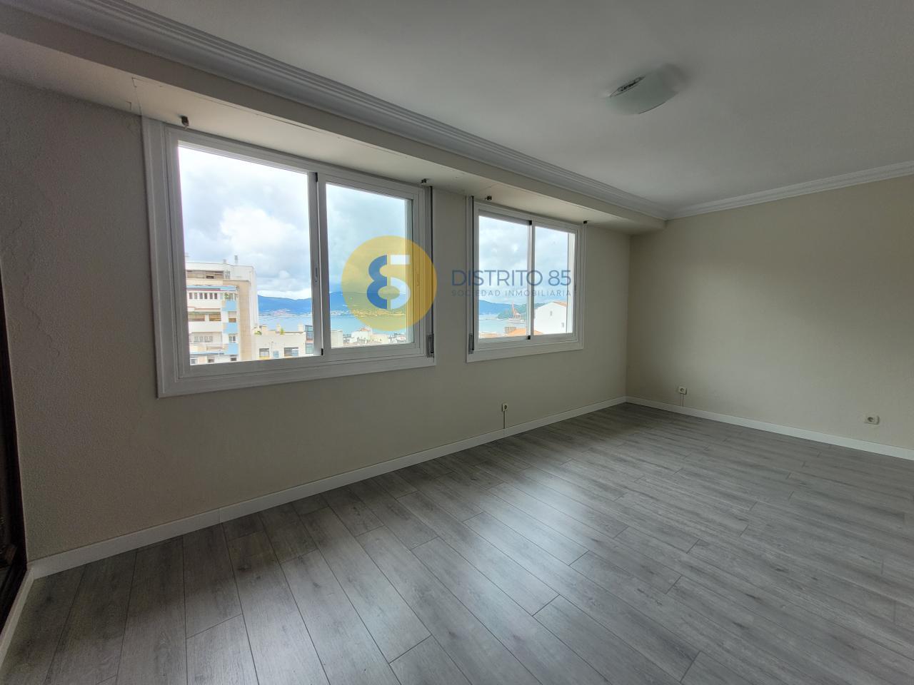 Hall de entrada con pasillo distribuidor. Amplio salón con vistas al Castro de Vigo. Tres dormitorios, todos con armarios empotrados y uno de ellos con vistas despejadas a la ría.