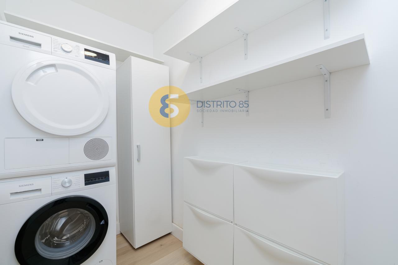 La vivienda completamente amueblada se distribuye de la siguiente manera: Recibidor con armario empotrado y acceso al cuarto de lavandería.