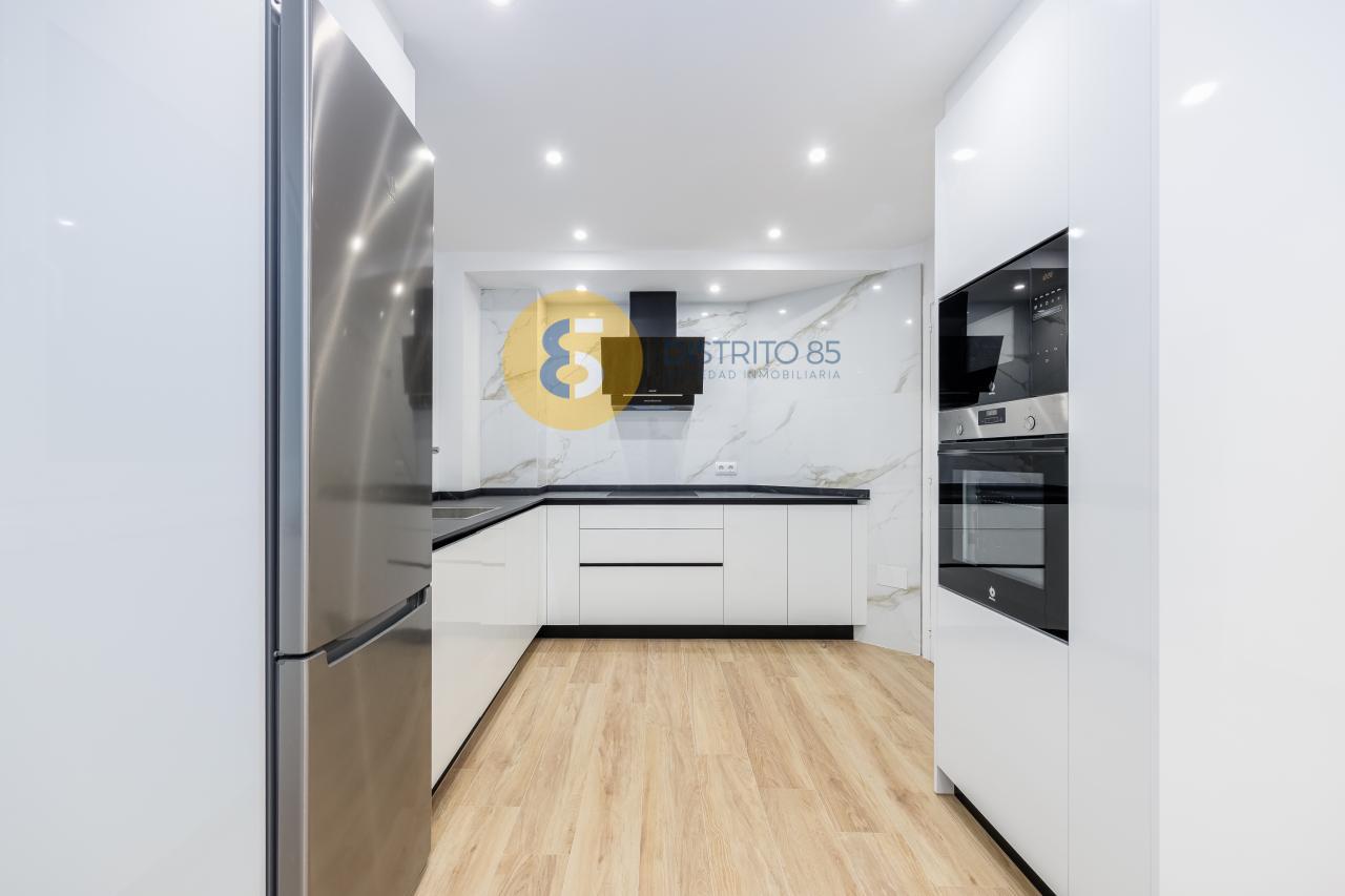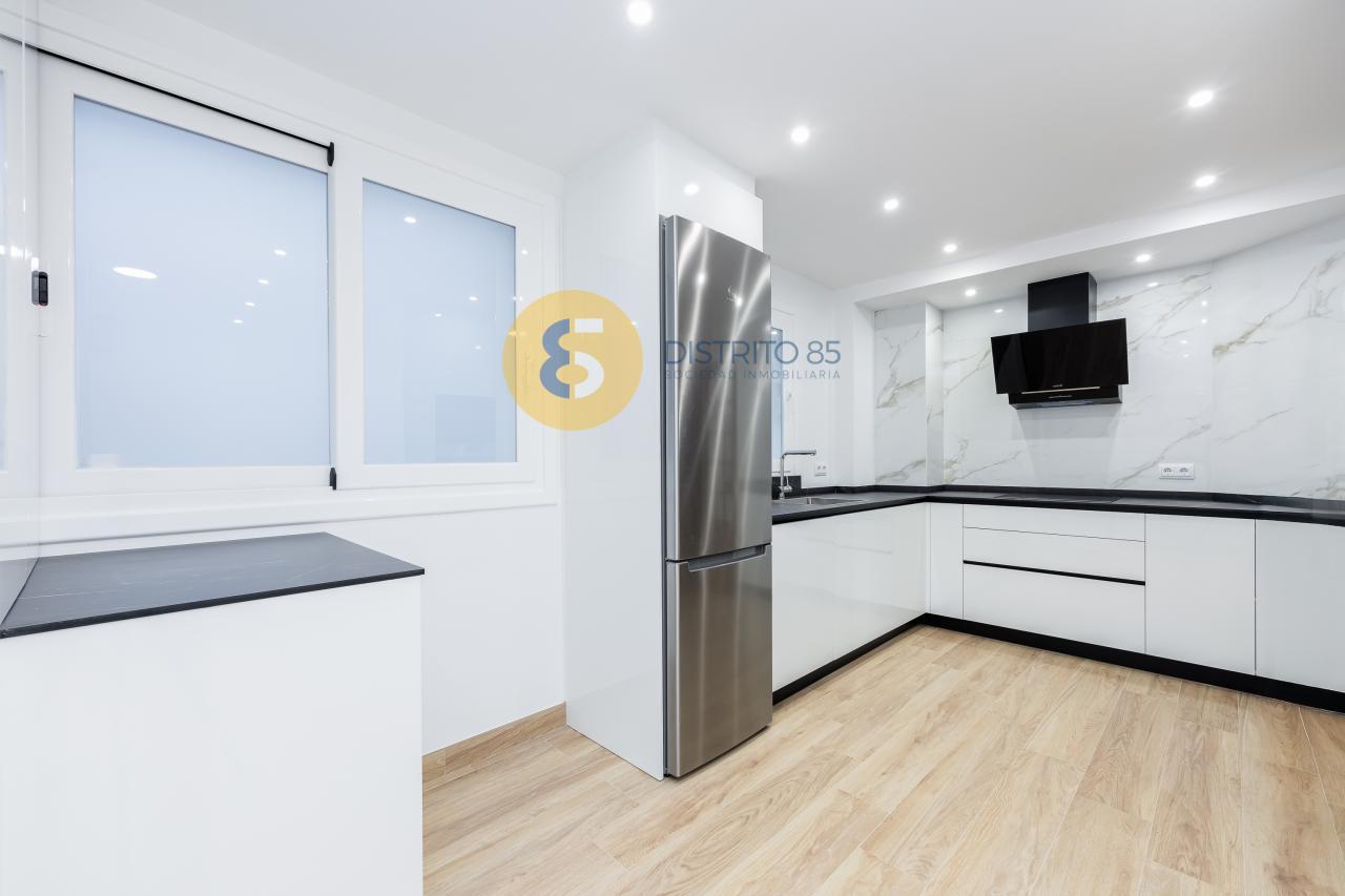 La vivienda se distribuye de la siguiente manera: amplio recibidor con acceso a cocina completamente reformada y equipada con todos los electrodomésticos a estrenar. Además cuenta con un comedor - zona office abierta a la cocina (antiguamente era el cuarto dormitorio de la vivienda).