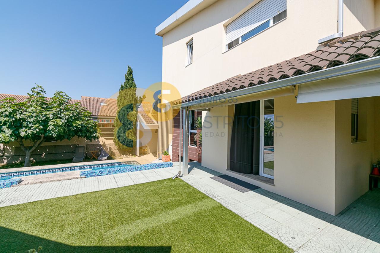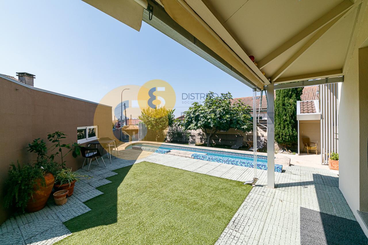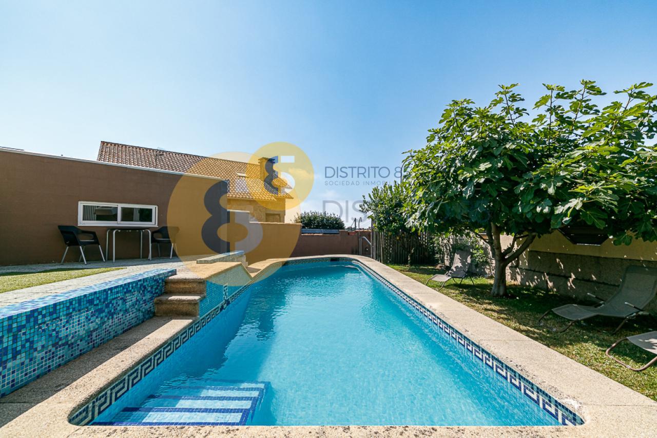 El jardín cuenta con una piscina privada, árboles frutales, zona de lavandería, barbacoa cubierta y riego automático para la zona verde. Dispone de un baño completo para no tener que acceder a la vivienda principal.