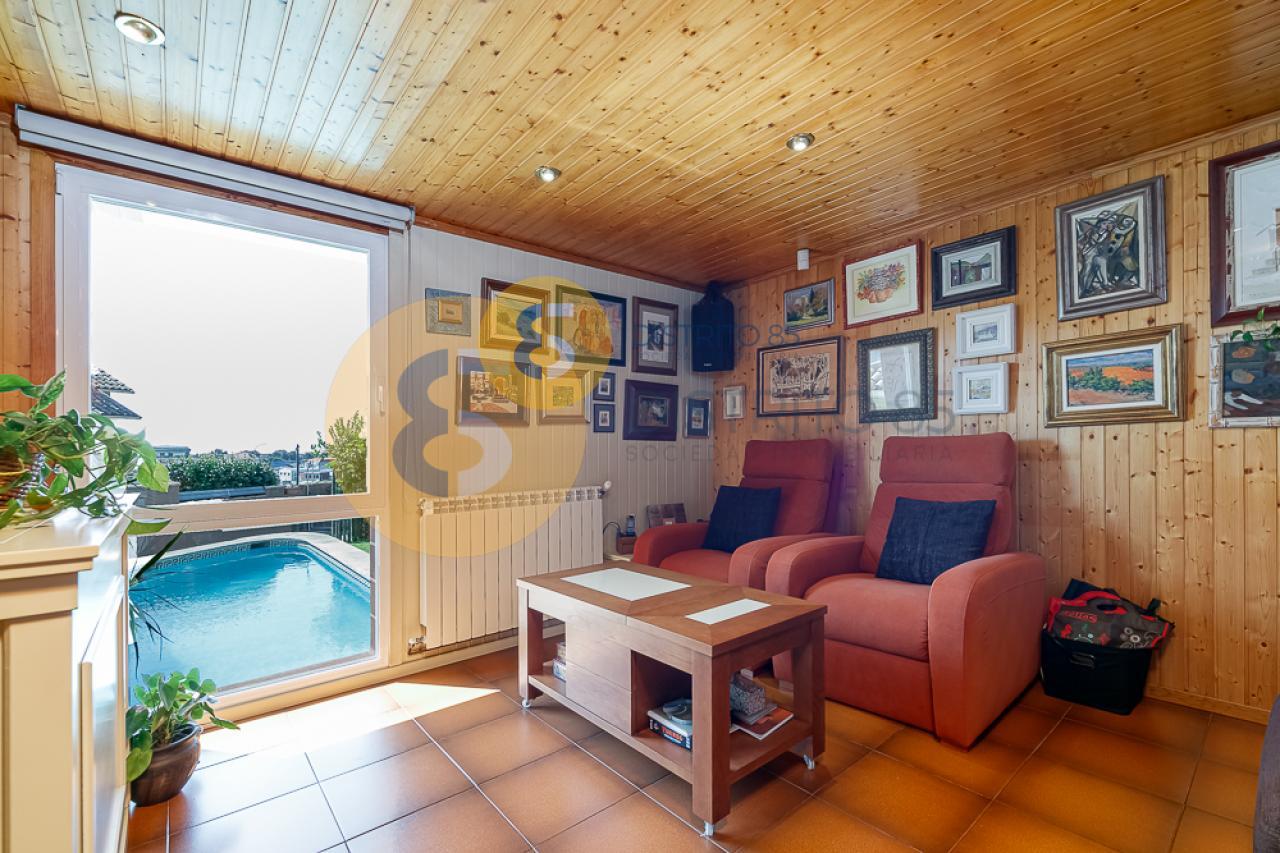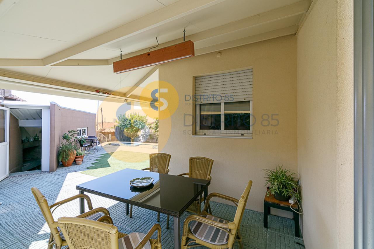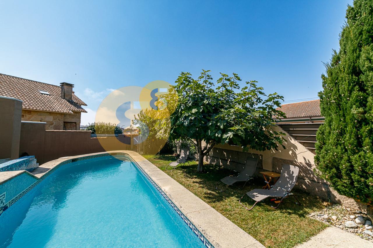 El jardín cuenta con una piscina privada, árboles frutales, zona de lavandería, barbacoa cubierta y riego automático para la zona verde. Dispone de un baño completo para no tener que acceder a la vivienda principal.