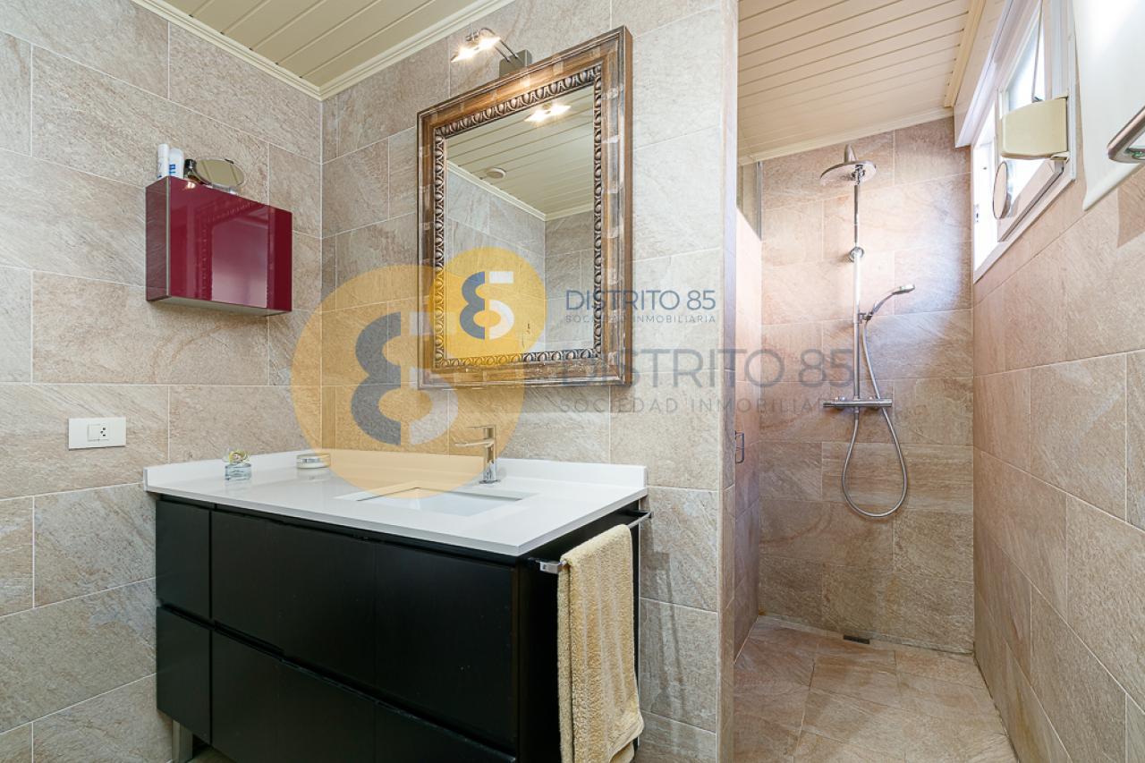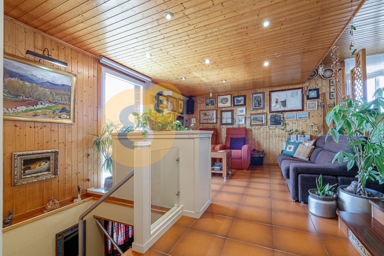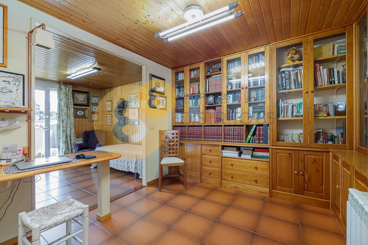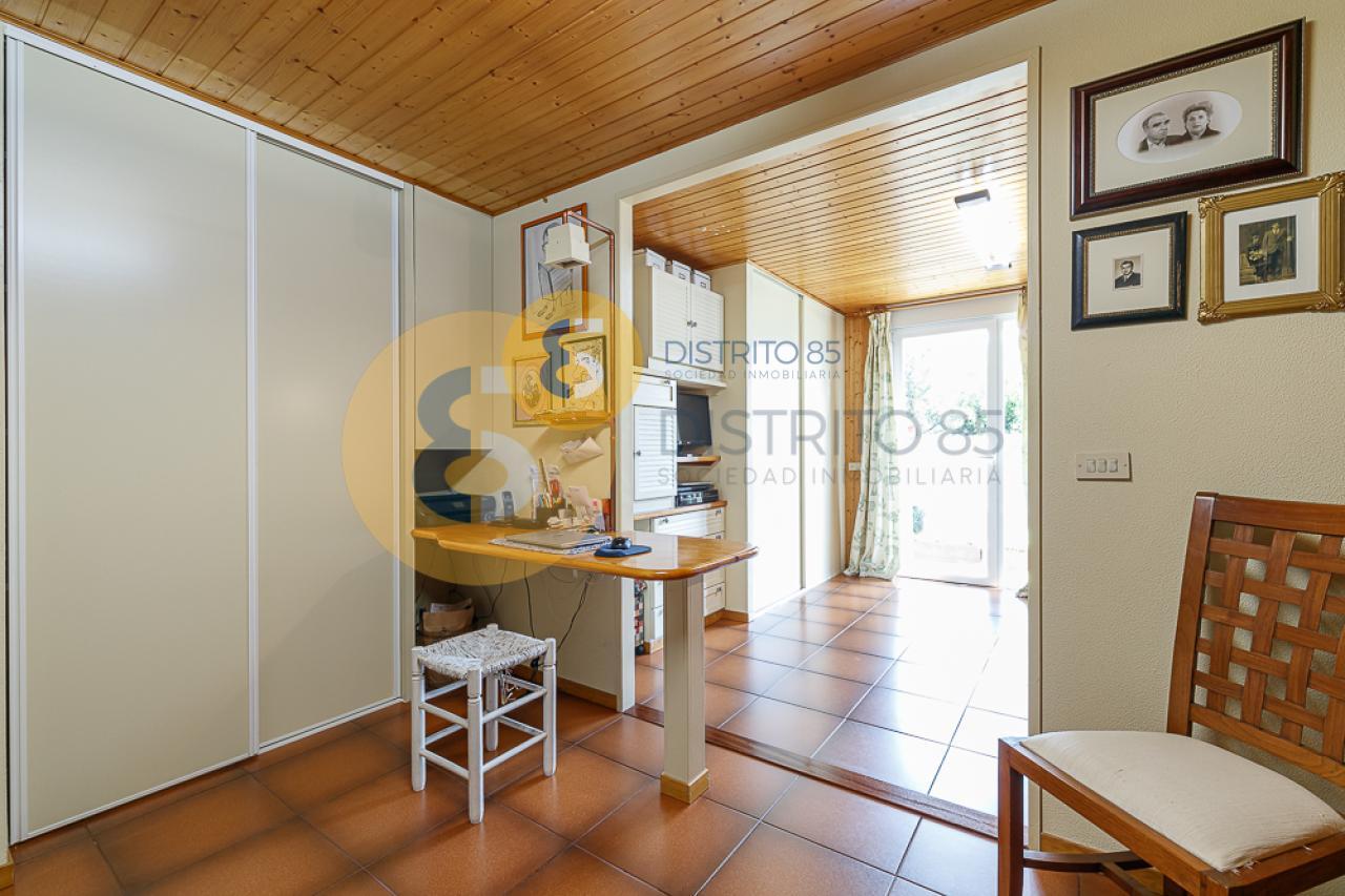 En planta baja nos encontramos con un salón de unos 35 m2, cocina totalmente equipada, sala de estar con acceso a terraza, 2 dormitorios con armarios empotrados (el principal cuenta con baño en suite y el segundo, de unos 25 m2, dispone de una sala de estudio) y 1 aseo de cortesía.