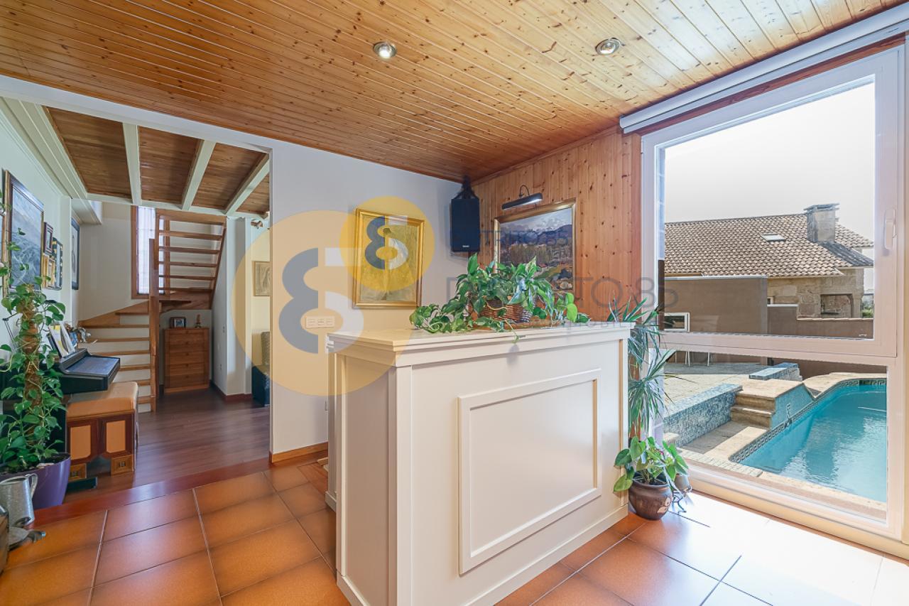 Próximo a la playa del Vao, concretamente en la zona de Corujo, disponemos de este chalet de 322 m2 sobre una parcela de unos 500 m2: