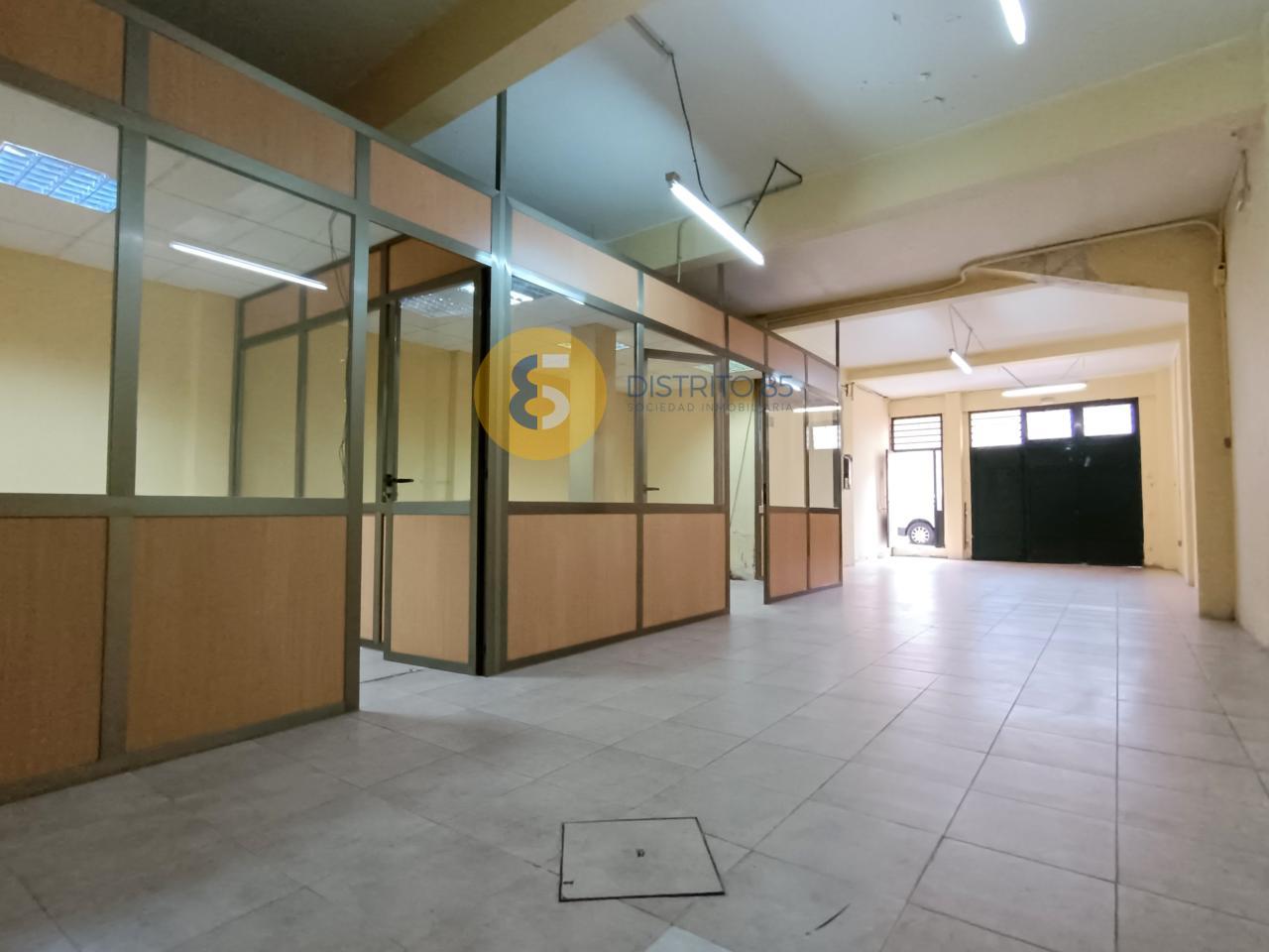 Amplia zona diáfana contando con doble acceso, puerta para peatones y portón (no cuenta con vado). Además dispone de dos despachos.