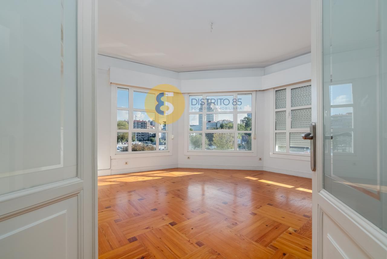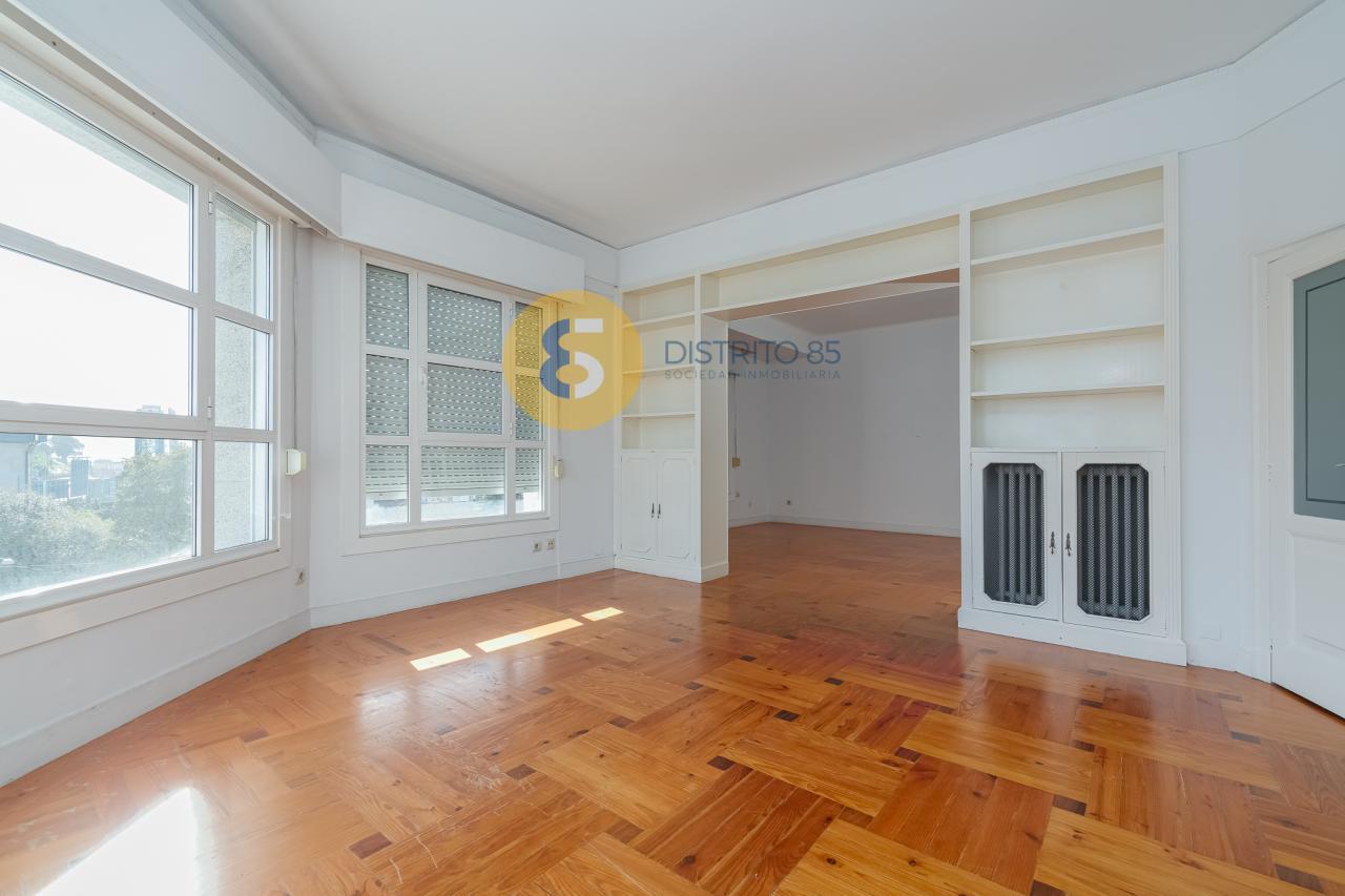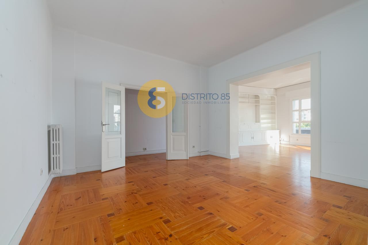 En Avenida Gran Vía, muy próximo a la Plaza de España y en un edificio de piedra catalogado con protección ambiental, disponemos de esta magnífica vivienda para los amantes de los techos altos, con una superficie de 243 m2 construidos: